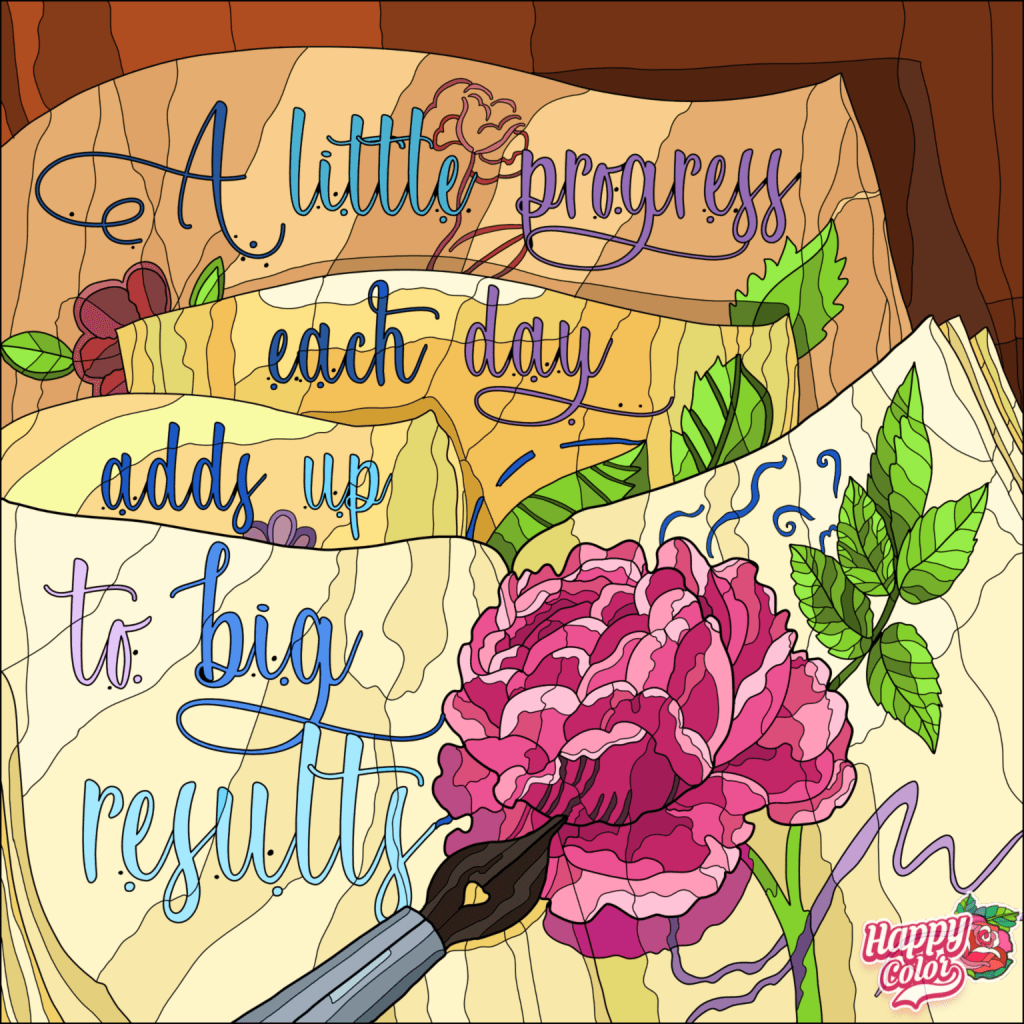 3. Go back to (or create) a realistic goal. Small, doable steps reap big rewards. I was reminded of this fact when I was doing a color-by-number picture in the Happy Color app (Google Play, App Store) last night. The picture I was coloring contained the phrase “A little progress each day adds up to big results.”